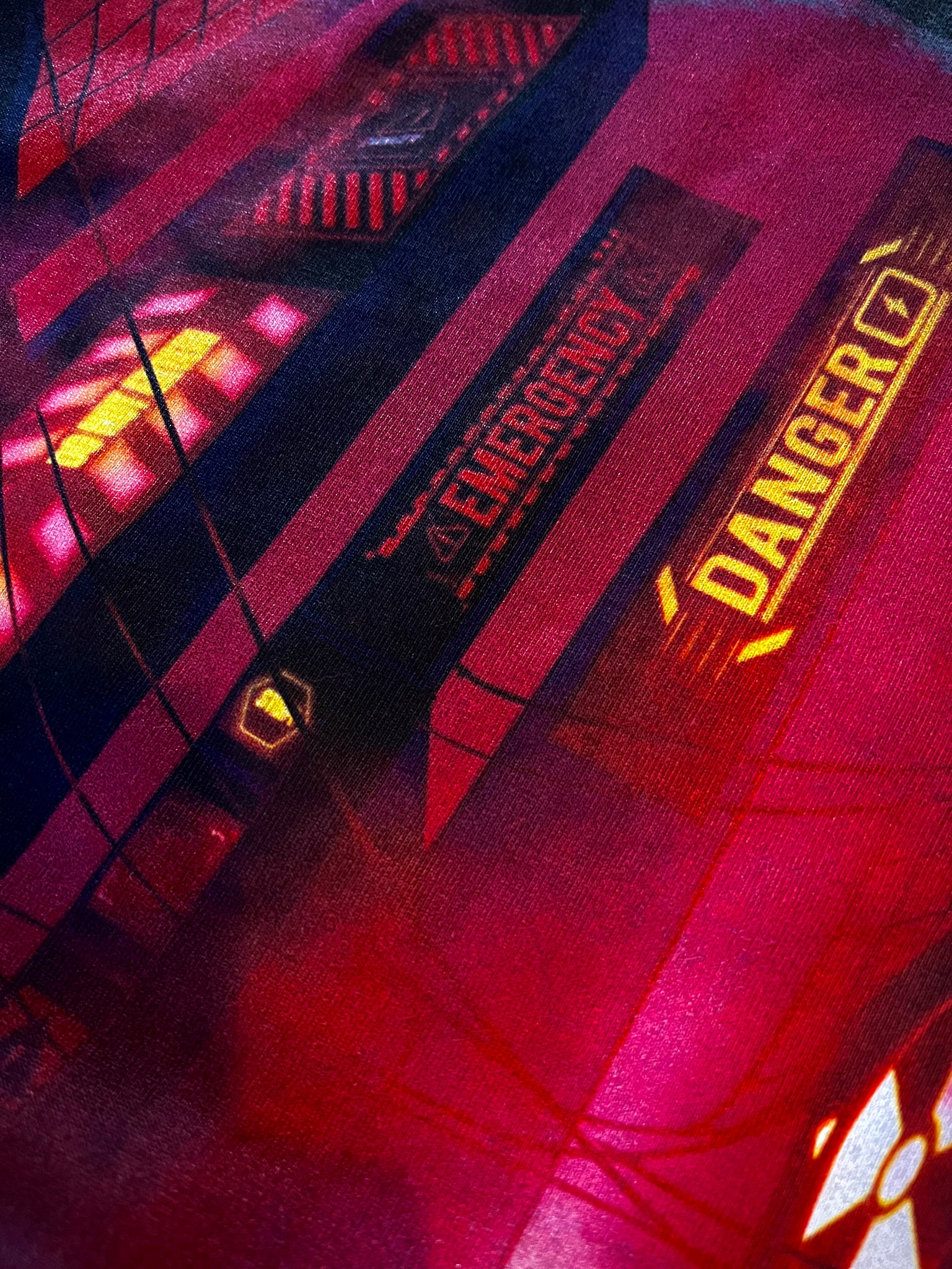• Mega Jumbo front multicolor screenprint.